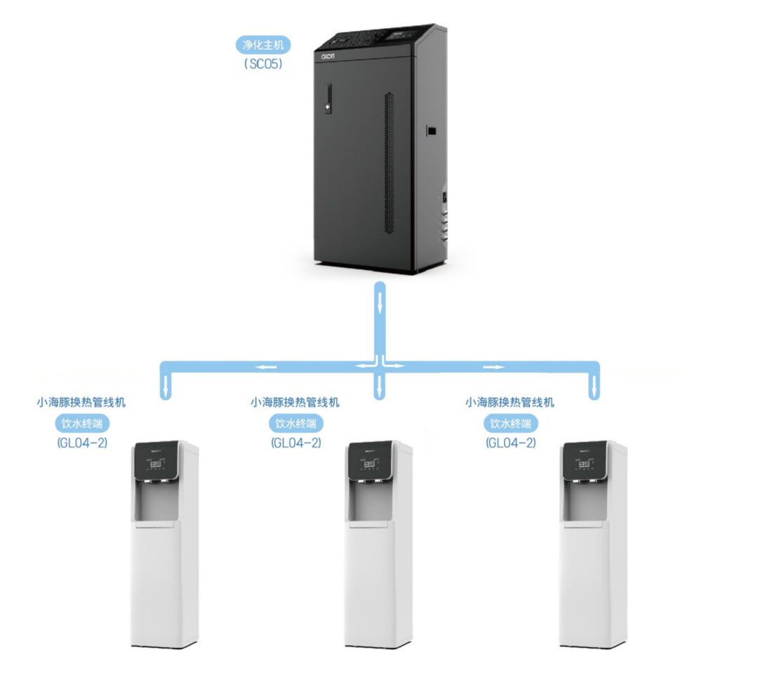 可(kě)設計(jì)爲“主機(jī)集中淨化,分(fēn)機(jī)教室供水”的淨飲水系統